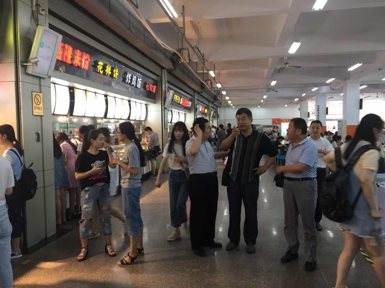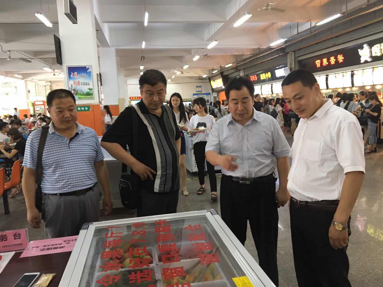 2017年6月13日上午,后勤处处长后勤集团总经理王振海、党总支书记张树昆、后勤处副处长后勤集团副总经理等领导深入学生食堂检查指导工作,并对提高食堂管理和服务水平提出了明确的要求。