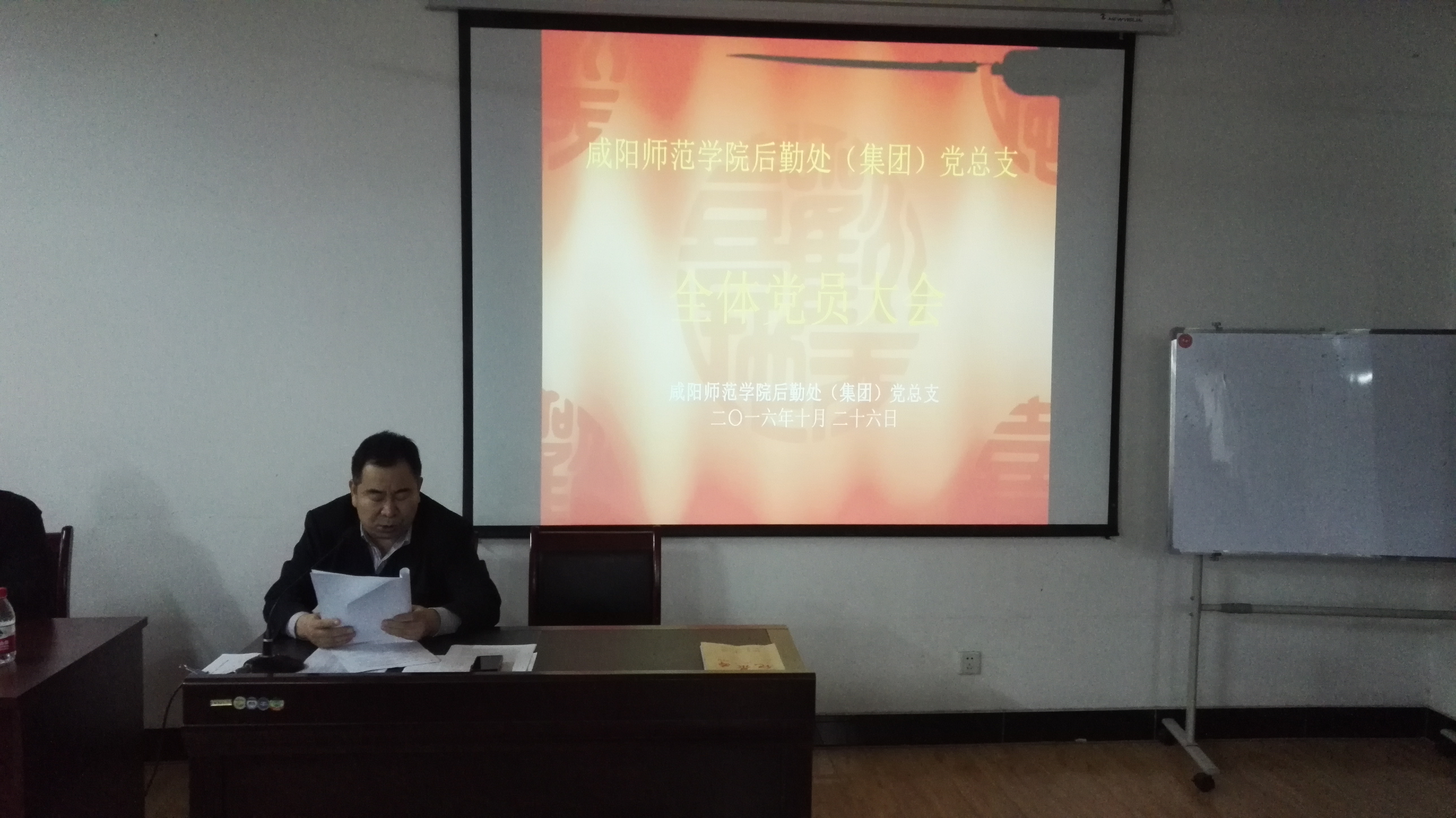 2016年10月26日下午,后勤处(集团)总支隆重召开了全体党员大会。全体党员手持党员证,胸前佩戴着党徽,郑重地参加了党员大会。
