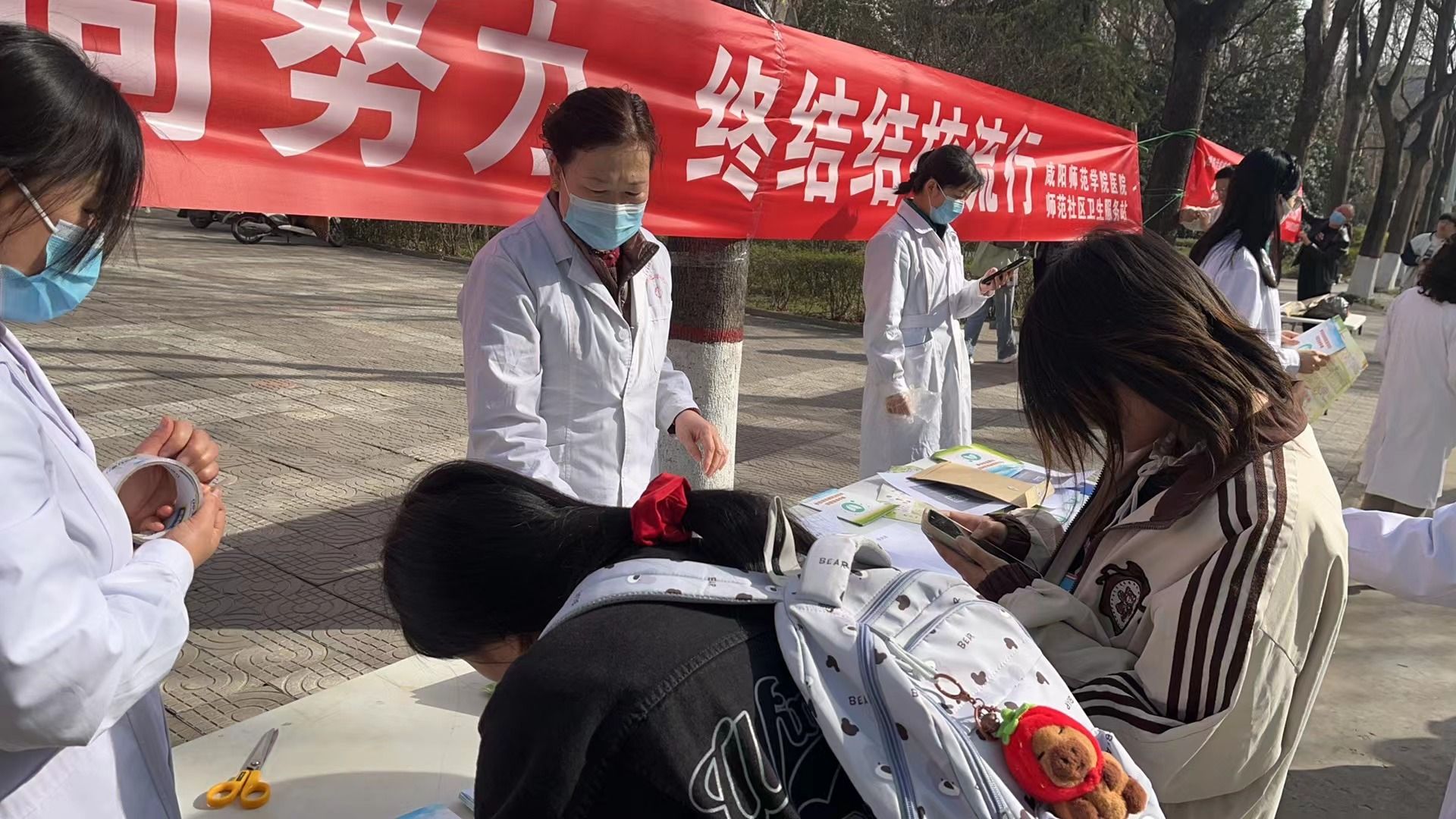 为了深入贯彻党的二十大精神,认真落实春季传染病的防控工作,根据渭城区卫健局及区疾控中心工作安排部署,由beat365正版唯一官网必一校医院主办,渭阳防保站等4家辖区医疗机构协助,于2024年3月20日上午10时,在beat365正版唯一官网必一学馨苑门前开展以“你我共同努力,终结结核流行”为主题的世界防治结核病日宣传活动。