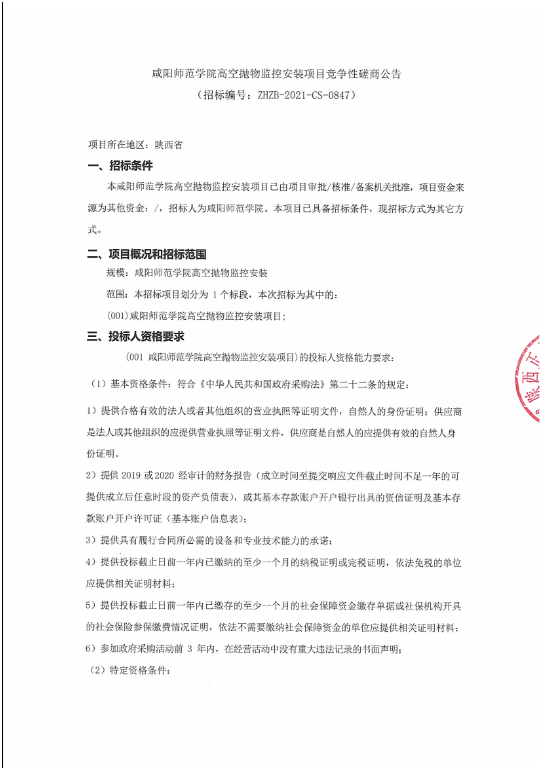 beat365正版唯一官网必一高空抛物监控安装项目竞争性磋商公告