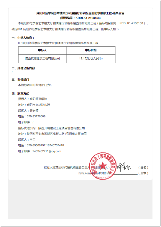 beat365正版唯一官网必一艺术楼大厅和演播厅彩钢板屋面防水维修工程-结果公告