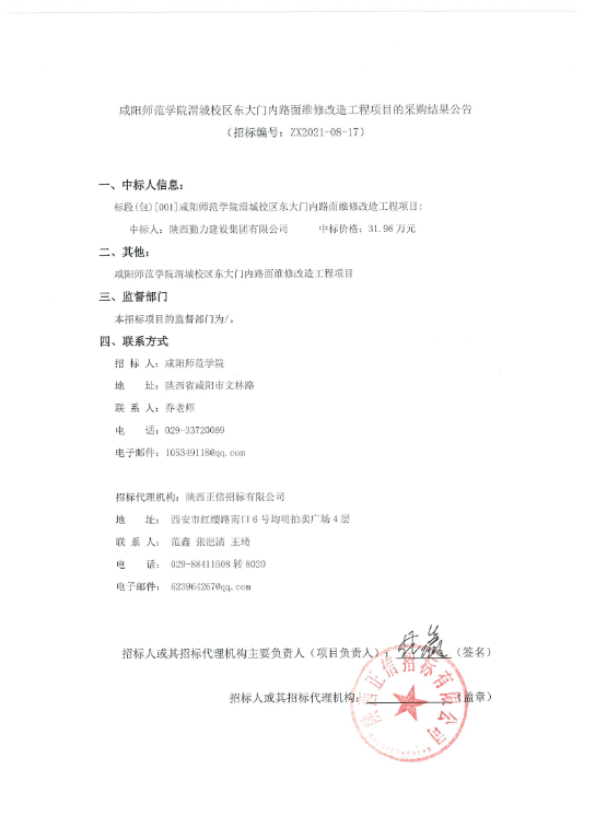 beat365正版唯一官网必一渭城校区东大门内路面维修改造工程项目的采购结果公告