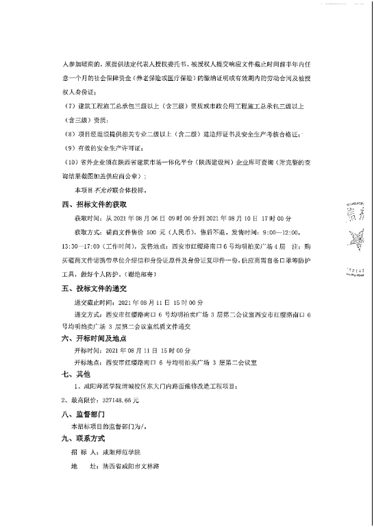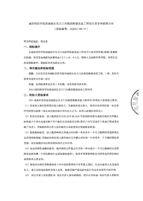 beat365正版唯一官网必一渭城校区东大门内路面维修改造工程项目竞争性磋商公告