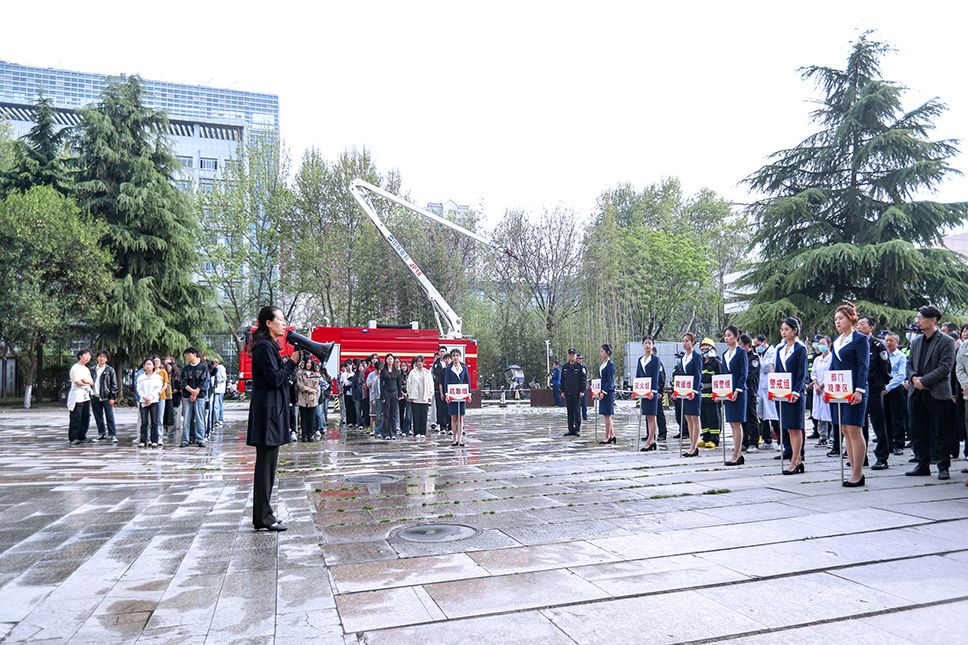 渭城区消防大队、党政办公室、党委宣传部、学生处、后勤保障处、保卫处的主要领导,各二级学院学生工作领导,学生志愿者消防队代表以及各部门消防管理员等共计200余人参与了此次演练。