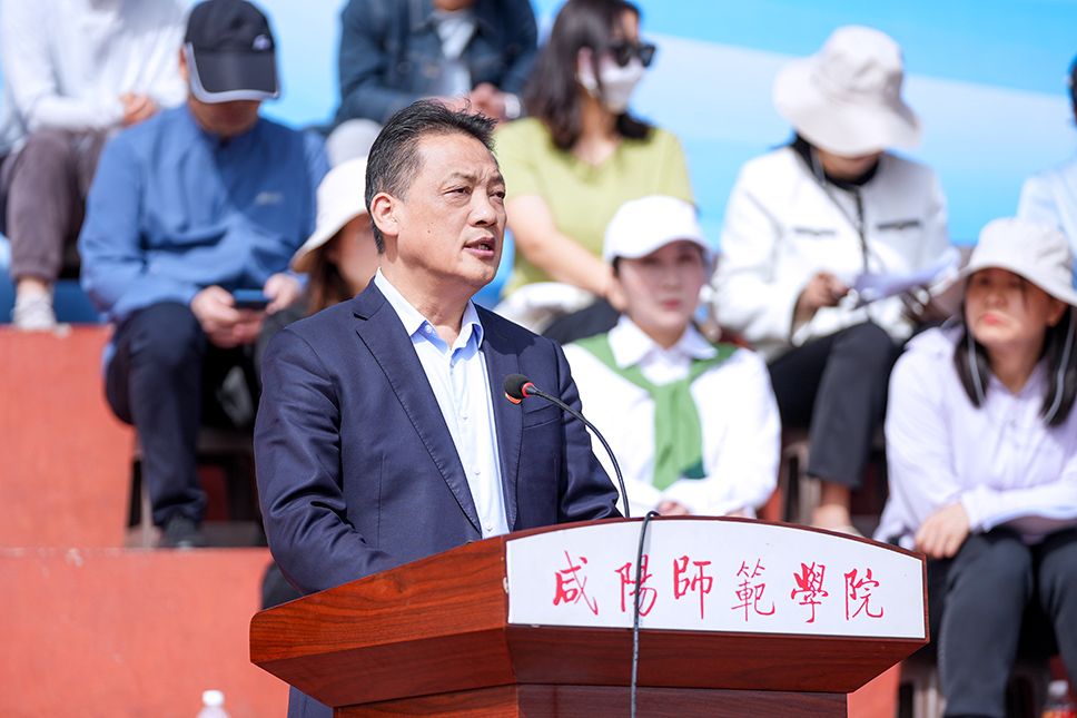 他指出,本次运动会的主题是“青春、开拓、创新”,全校师生情系渭水、相互传承,锻造出了以“咸阳师院精神”为内蕴的强有力的师生团队。时代需要运动场上的健儿们用坚实的肩膀扛起民族复兴的重任,通过体育运动和竞赛,表达爱国情感,展示奋进力量。