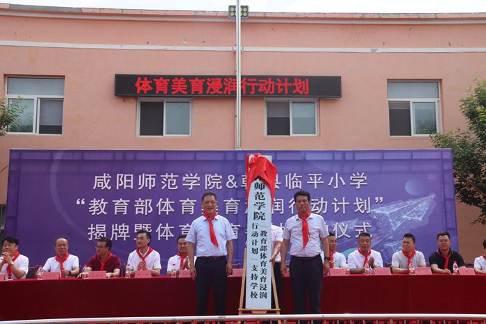5月27日,beat365在乾县临平小学举行“体育美育浸润计划”揭牌暨体育美育器材捐赠仪式。校党委副书记、校长王长顺出席仪式。