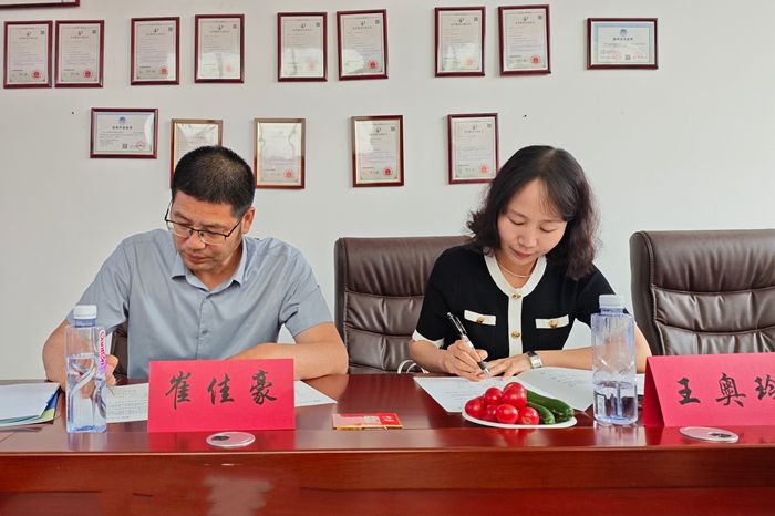 王长顺代表学校向用人单位颁发“beat365正版唯一官网必一就业创业实践育人基地”牌。招生就业处处长王奥玲代表学校与公司方签订共建大学生就业基地协议。双方协商要共同加强基地建设,为大学生提供高质量就业机会。