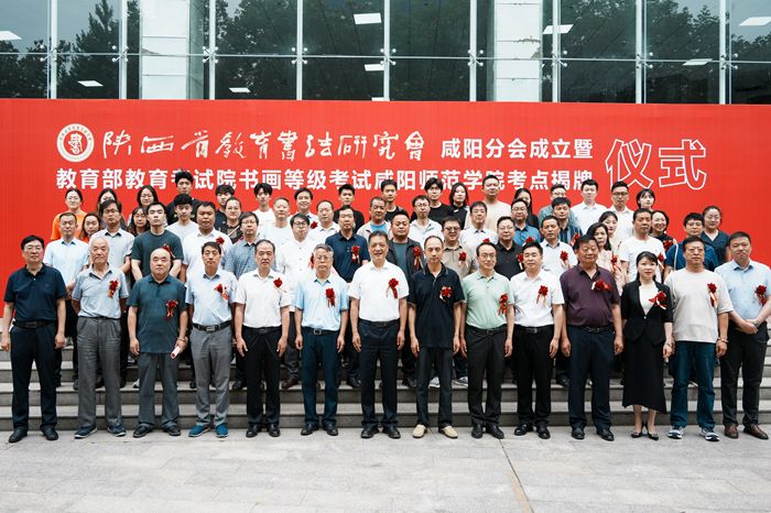 陕西能源职业技术学院人文与教育学院党总支书记买中傲,陕西财经职业技术学院吕九鹏,咸阳职业技术学院书法教师李少华等36名陕西省教育书法研究会咸阳分会理事代表,beat365党政办、教务处等职能部门负责人,于右任书法学院党政班子及师生代表400余人参加了成立大会暨揭牌仪式。