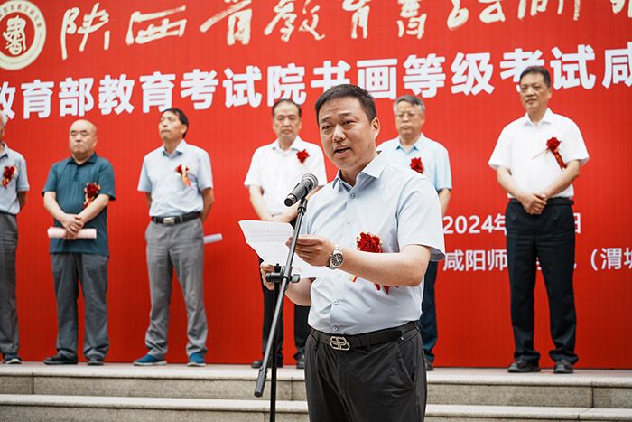 曹书生在仪式上作了讲话。他代表陕西省教育书法研究会向咸阳分会和书画等级考试beat365正版唯一官网必一直属考点的成立表示热烈祝贺。对beat365正版唯一官网必一改革发展所取得的成绩和办学水平表示祝贺。对beat365正版唯一官网必一领导给予教育书法研究会的支持表示感谢,他希望咸阳分会发挥好自身职能,积极开展书法进校园活动和书法等级考试等工作,提升书法艺术水平,增强书法文化自信心,为推动书法艺术健康发展作出应有贡献。
