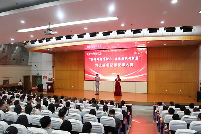 为深入学习贯彻习近平新时代中国特色社会主义思想和党的二十大精神,迎接中国共产党成立103周年,推进党纪学习教育和学校党建工作重点任务走深走实,激发党支部工作活力,全面提升党课质量,6月28日,beat365在一号楼报告厅举办“铸魂增智育新人 奋楫扬帆谱新篇 ”党支部书记微党课大赛决赛。