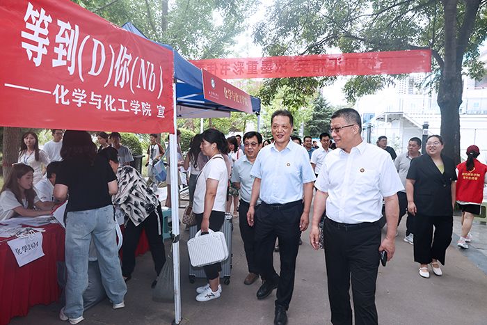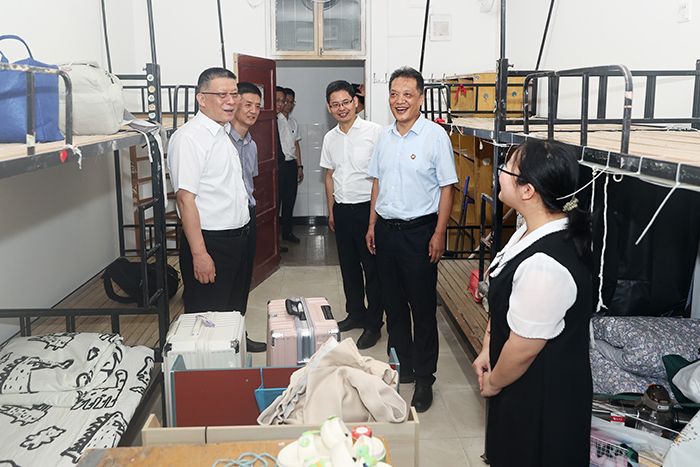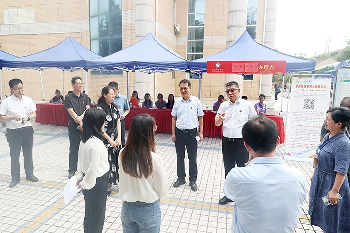 9月5日上午,校党委书记赵万东、校长王长顺、校党委副书记周群英一行在相关部门负责同志的陪同下,先后到渭城、秦都校区检查指导迎新工作。校领导走访了新生注册处、志愿者服务点、缴费处、学生食堂、医学处置点等迎新现场,详细了解新生报到情况,与新生和家长亲切交流,对服务在迎新一线的工作人员和志愿者表示慰问。
