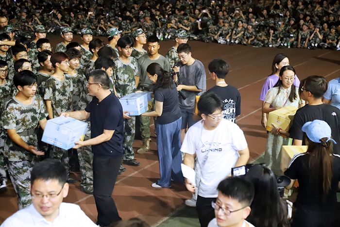 9月17日晚,校党委书记赵万东、校党委副书记周群英来到军训场地,对承训教官、新生进行了慰问。他们和参训学生一起过中秋、度佳节,欣赏由军训团、校学生会联合举办“以心迎新,共度中秋”军训迎新晚会。