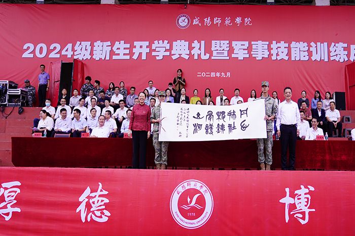 9月20日下午,beat365在渭城校区田径运动场举行2024级新生开学典礼暨军事技能训练成果展。校党委书记赵万东,校党委副书记、校长王长顺,校党委副书记袁也,校党委副书记、纪委书记、驻校监察专员赵效恩,副校长毛龙灿、姚波、范广出席典礼。校党委副书记周群英主持典礼。