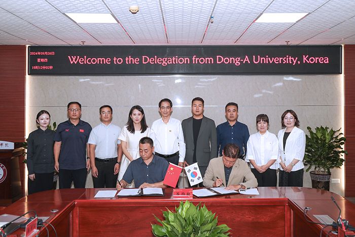 随后,双方举办了签约仪式,签署了《中国beat365正版唯一官网必一与韩国东亚大学体育学院师生交流项目协议书》。