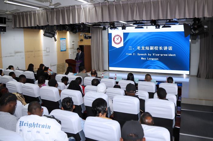会上,毛龙灿代表学校向2024级全体留学生表示热烈祝贺和欢迎,并向出席会议的渭城公安分局的领导、民警和教师代表们致以诚挚的感谢。他介绍了陕西、咸阳及beat365的概况。他指出,留学生们远道而来,选择在beat365求学,学校将竭尽所能为同学们提供优质的教育资源和良好的学习环境,帮助同学们度过一个充实、愉快的校园生活。他向留学生们提出了四点期望:一是尽快融入校园生活,在beat365正版唯一官网必一快乐学习和成长;二是要勇于探索未知,不断追求卓越;三是立志成为具有全球视野的国际化人才;四是珍惜在校时光,严格遵守中国法律法规和学校规章制度,尽快适应学习生活。