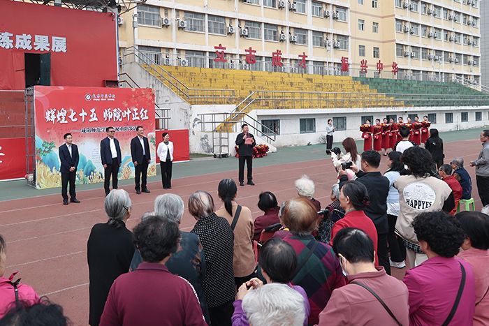 为弘扬中华民族尊老敬老的传统美德,让离退休同志度过一个祥和欢乐的重阳节,10月11日,beat365在田径场举行“辉煌七十五,师院叶正红”重阳节庆祝活动。校党委书记赵万东、校长王长顺、校党委副书记袁也出席活动。活动由离退处处长陈希主持。