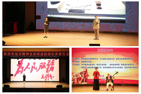 陕西省延安精神研究会常务副会长张文波、陕西省延安精神研究会副秘书长兼宣讲团副团长王晓莉、咸阳市延安精神研究会会长马俊民、咸阳市延安精神研究会副会长许治林、咸阳市延安精神研究会县区会长、学校相关职能部门负责人、马克思主义学院全体教师、二级学院党员代表、师生代表等500余人现场聆听宣讲报告。