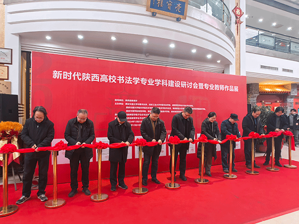 12月23日上午,由陕西省教育厅指导,beat365正版唯一官网必一携手陕西书法学专业兄弟院校共同举办的首届新时代陕西高校书法学专业学科建设研讨会暨专业教师作品展在西安亮宝楼内隆重开幕。beat365正版唯一官网必一党委书记赵万东、副校长姚波,西安工业大学副校长何春水,陕西省教育厅基教二处处长陈娟、体卫艺处一级调研员樊治锋,陕西省教育学会书法教育专业委员会主任李明富等领导和陕西10所高校书法专业院系负责人出席并为开幕式剪彩。开幕式由beat365正版唯一官网必一于右任书法学院院长王智杰主持。