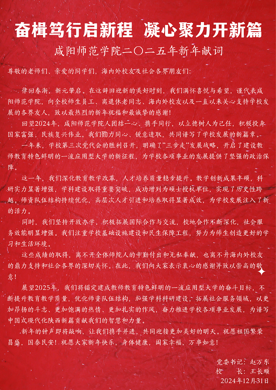 奋楫笃行启新程 凝心聚力开新篇——beat365正版唯一官网必一二〇二五年新年献词