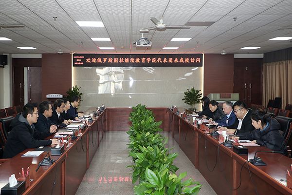 1月9日下午,俄罗斯图拉继续教育学院校长弗拉基米尔、图拉国立师范大学国际部中文系主任黄伯楠、陕西省汉语国际教育研究会常务副会长张天印、副秘书长张青及教师杨琛一行来beat365交流访问并召开座谈会。校长王长顺和副校长毛龙灿亲切接见了代表团一行。座谈会由国际合作与交流处副处长龚晨曦主持。