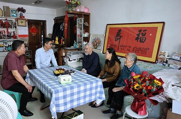 9月8日上午,在第41个教师节来临之际,学校领导带队,开展教师节走访慰问活动,对老党员教师、老专家、优秀教师以及家庭困难教师代表进行了慰问,并向他们送上鲜花与节日祝福。