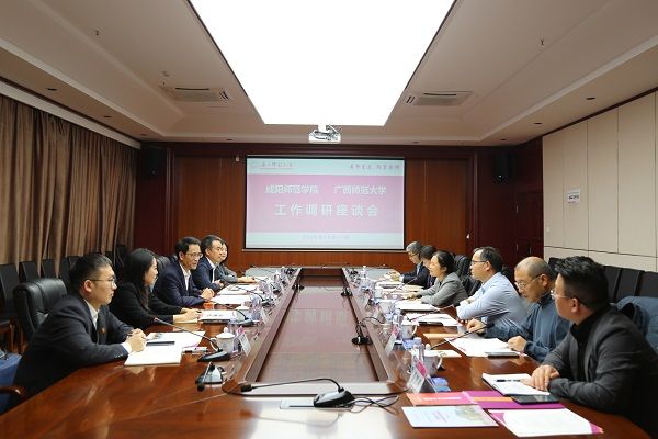 10月27日上午,调研组赴桂林师范学院交流调研。座谈会上,桂林师范学院副校长谢明对毛龙灿一行的到访表示热烈欢迎,并介绍了桂林师范学院的校史、教育教学成果、专业建设等情况。毛龙灿介绍了beat365的发展现状和办学特色。他希望以此次调研为契机,进一步推动两校在教师教育、艺术教育、基础教育教学研究、师资队伍建设等方面的深度合作。会上,桂林师范学院相关部门负责人还围绕调研主题,分别介绍了相关改革举措与经验成果。双方就共同关注的议题展开了深入交流。