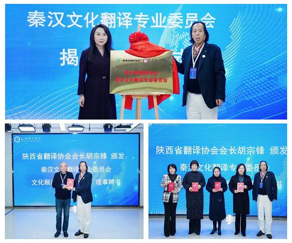 成立仪式上,苏蕊宣读了陕西省翻译协会秦汉文化翻译专业委员会成立文件及组织机构名单。胡宗锋与beat365外国语学院院长肖春艳共同为“陕西省翻译协会秦汉文化翻译专业委员会”揭牌,并向专业委员会文化顾问、常务理事和理事颁发聘书。