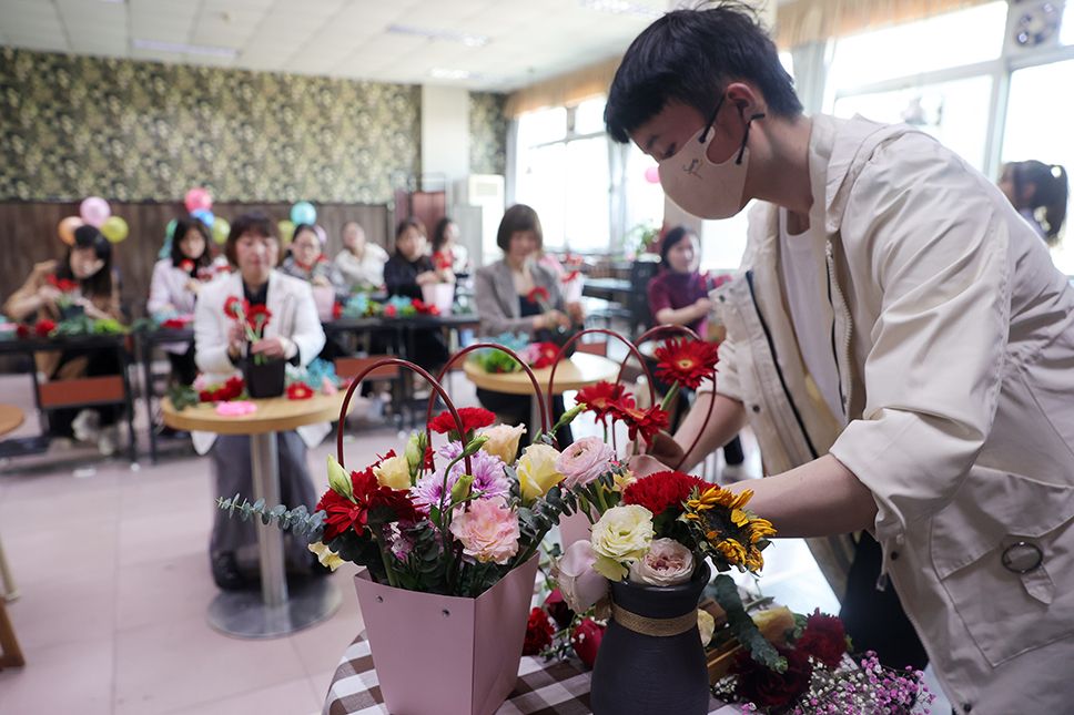赵万东代表学校党政向各分会女教职工代表赠送节日礼品,并向全校女教职工致以节日的祝贺和美好的祝福。