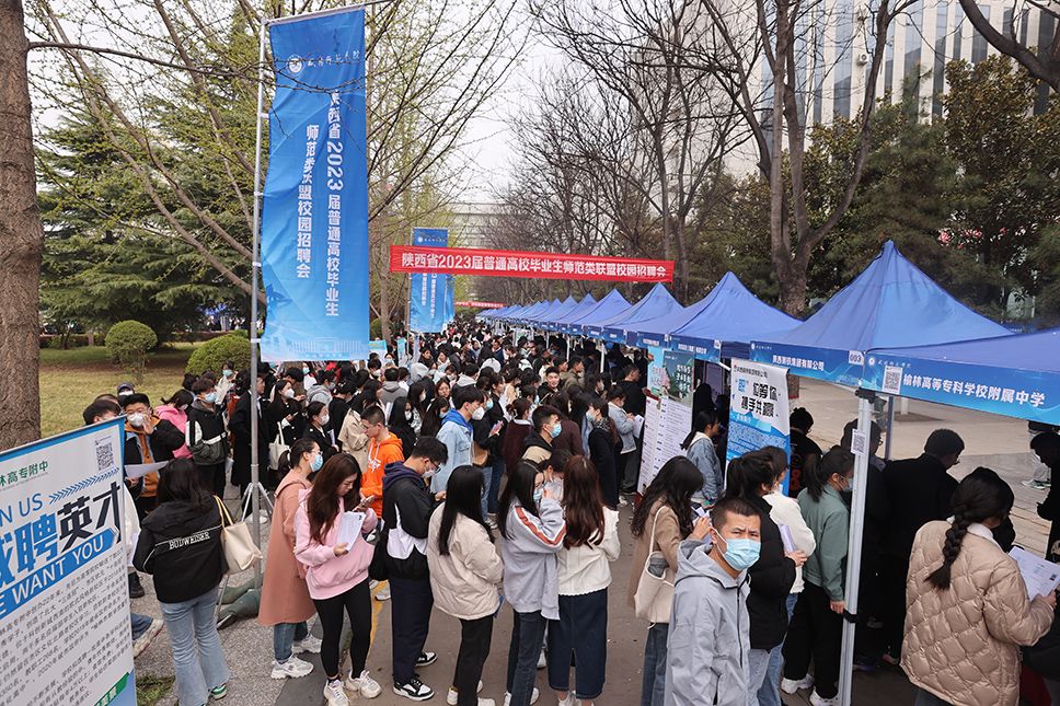 3月24日,“陕西省2023届普通高校毕业生师范类联盟校园招聘会”在beat365渭城校区“鼎成天下”广场举行。
