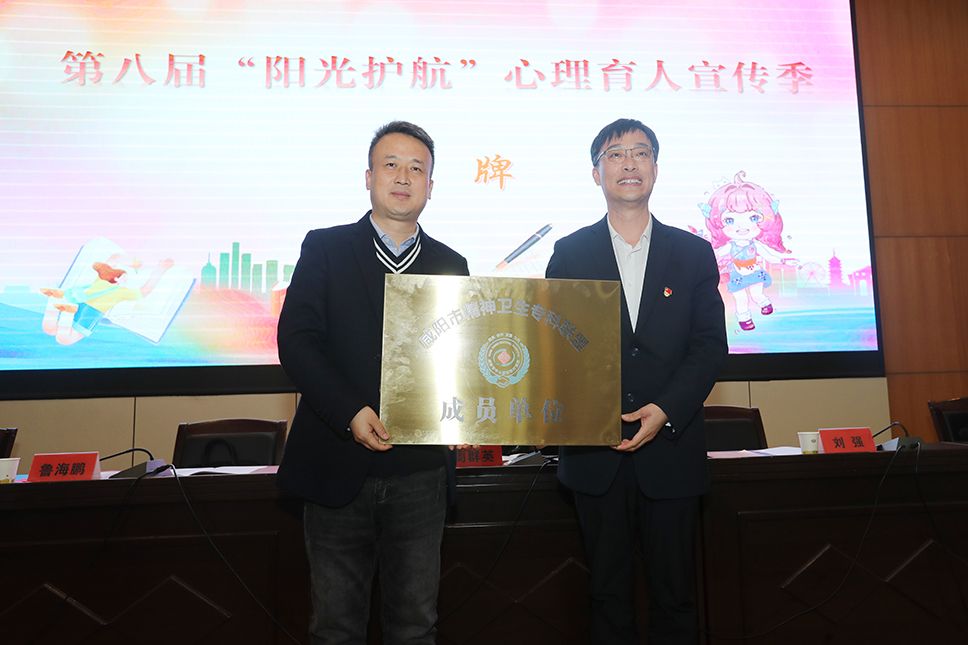 刘强代表咸阳市中心医院向beat365授牌,beat365正式成为咸阳市中心医院高校学生精神卫生医疗服务联动机制成员单位。