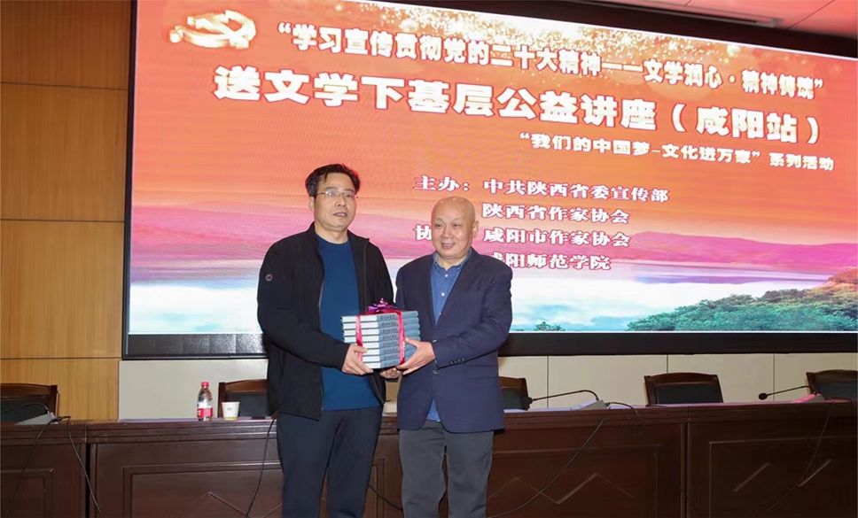 4月1日,由陕西省委宣传部、陕西省作家协会主办的“学习贯彻党的二十大精神——文学润心,精神铸魂”送文学下基层公益讲座在学院一号楼报告厅举行。陕西白鹿书院常务副院长、中国书院学会副会长、陕西省柳青文学研究会会长、陕西省散文学会副会长邢小利,陕西省作家协会社联部主任迟洪国,咸阳市作家协会常务副主席董信义,咸阳市文学艺术界联合会创联部部长范建团,咸阳市作家协会创联部部长郭忠凯出席活动。