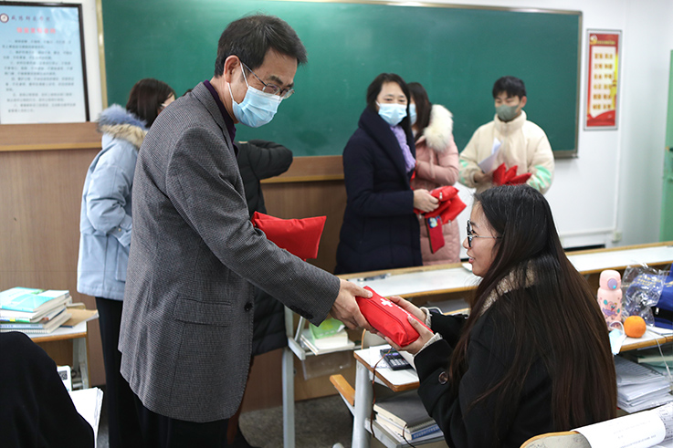 12月8日,副校长毛龙灿在2号楼考研自习室慰问化学与化工学院备考学子,为考研学子送上了“考研暖心包”。毛龙灿肯定同学们为实现梦想不断努力、敢于拼搏的奋斗精神,勉励同学们在最后的冲刺阶段,坚持按照计划稳步前进,端正心态、坚定信心,为自己交上一份满意的答卷。
