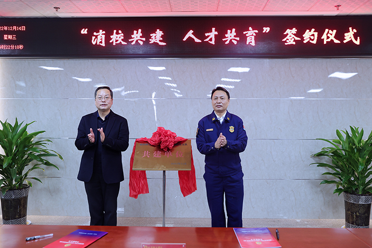 12月14日,beat365与咸阳市消防救援支队举行“消校共建,人才共育”合作签约仪式。校长舒世昌,党委副书记周群英,咸阳市消防救援支队政治委员彭其山、政治部主任雷鹏出席。