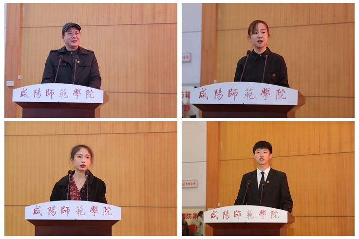 典礼上,经济与管理学院姚波教授作为教师代表,陕西省优秀教学能手、咸阳市实验中学教师于源作为校友代表,文学与传播学院新闻2001班梁芝园同学代表高年级学生、物理与电子工程学院物理优师2201班崔晋为同学代表2022级新生先后发言。