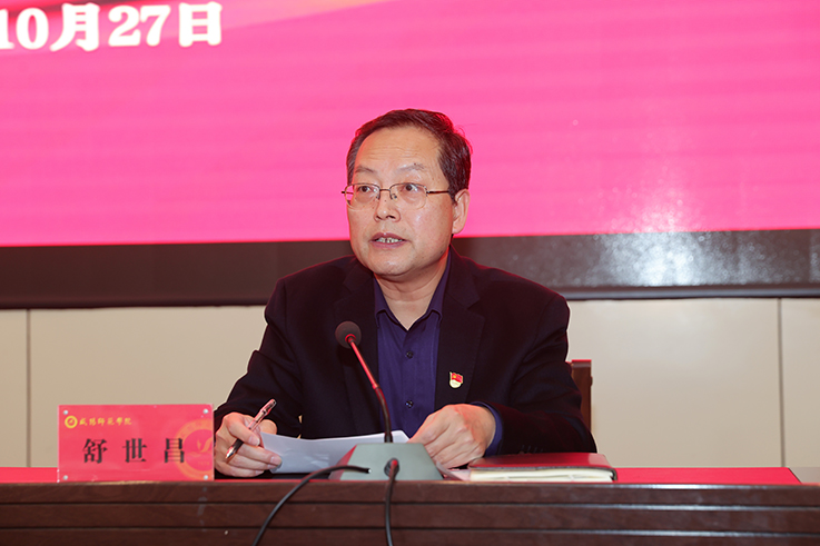 10月27日,党委副书记、校长舒世昌主持召开党建暨作风建设专项行动工作推进会。会议的主题是:以党建引领、作风带动,推动年度重点任务高质量完成。全体在校校领导,处级以上干部,第三批挂职干部,党建工作“标杆”“样板”党组织书记、结对共建党支部书记代表参加会议。