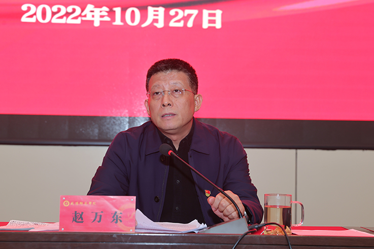 校党委书记赵万东作了讲话。他指出,在党的二十大胜利召开,全党全国人民深入学习宣传贯彻党的二十大精神,扎实推进作风建设专项行动的重要时刻,召开学校党建暨作风建设专项行动工作推进会正当其时。在办人民满意的大学这条教育之路上,各级党组织要不断加强党的建设,充分理解党建与立德树人、人才培养的目标统一性,充分思考党建与教育事业深度融合的有效渠道,全面提升党建工作质量,以高质量党建引领事业发展。