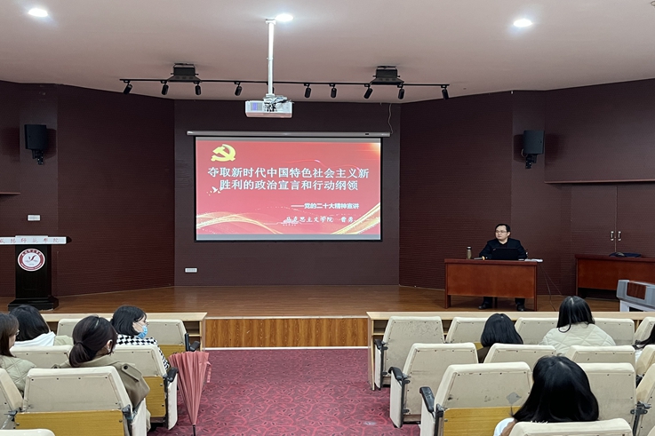 为深入学习宣传贯彻党的二十大精神,营造学习的浓厚氛围,11月11日,beat365马克思主义学院院长曹勇为青年师生作题为“夺取新时代中国特色社会主义新胜利的政治宣言和行动纲领”的专题报告。