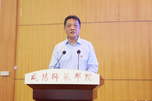 教育部教师工作司司长任友群,陕西省教育厅副厅长王海波,校党委书记赵万东、校长舒世昌,咸阳市教育局局长丁收卫,中国农村教育发展研究院院长东北师范大学研究生院院长邬志辉通过线上或线下方式出席研讨会。副校长王长顺主持开幕式,副校长张弘主持大会。
