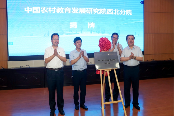 王海波、赵万东、舒世昌、丁收卫共同为“中国农村教育发展研究院西北分院”揭牌。