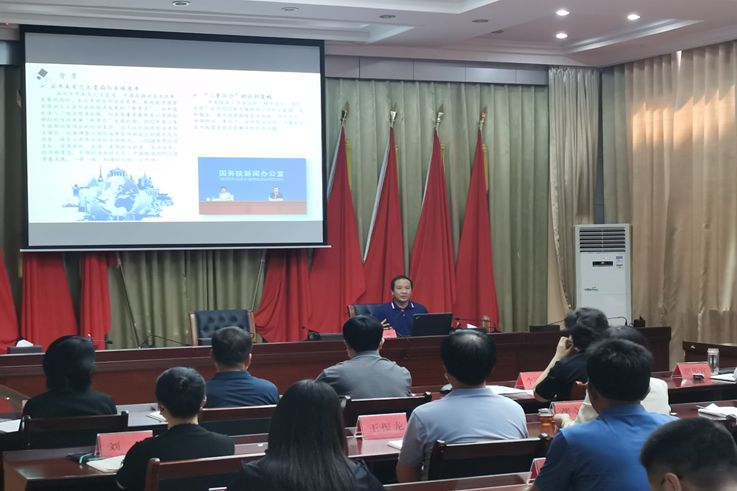 姚波围绕关于《中共中央国务院关于加快建设全国统一大市场的意见》相关政策的基本精神、政策的科学解释、咸阳面临的机遇与挑战及融入全国统一大市场建设的工作建议等4个方面,进行了理论阐释、政策解读和实践引导。