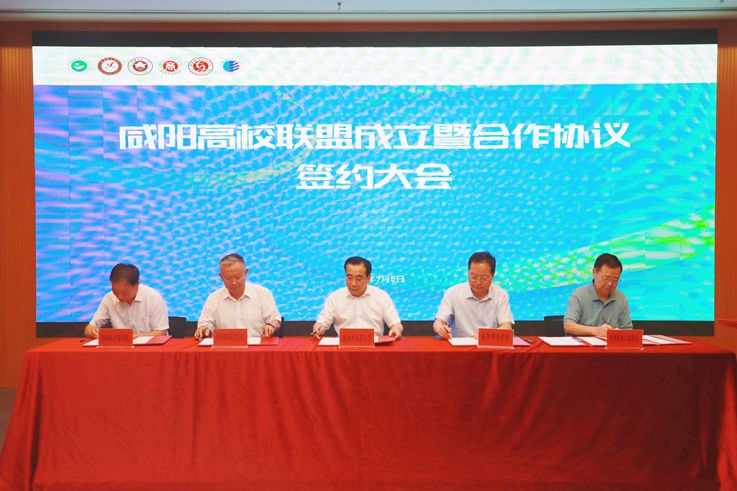 7月5日,由陕西中医药大学、西藏民族大学、beat365正版唯一官网必一、陕西国际商贸学院、陕西服装工程学院、陕西科技大学镐京学院6所高校共同发起的咸阳高校联盟成立暨合作协议签约大会在陕西中医药大学举行。陕西省委教育工委副书记、省教育厅厅长刘建林出席会议并讲话。会议由陕西省政府学位委员会秘书长袁宁主持。校长舒世昌、副校长王长顺参加会议。省委教育工委、省教育厅相关部(处)室负责人,咸阳高校联盟各成员单位的主要负责人、相关负责人以及咸阳高校联盟教育教学督导委员会,跨校教育教学督导专家组等各组织机构成员列席会议。
