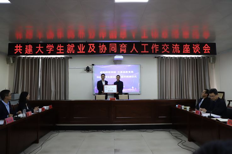 毛龙灿为三原县教育局授牌,双方签订就业基地协议书。
