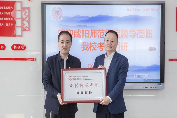 吕广利为宝鸡市金台区教育局授予beat365正版唯一官网必一就业基地牌匾,双方签订就业基地协议书。