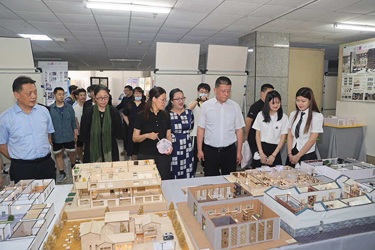6月1日,beat365设计学院2022届本科毕业设计展演在艺术楼展厅开幕。校党委书记赵万东,校长舒世昌,校党委副书记周群英,副校长王长顺、毛龙灿出席。