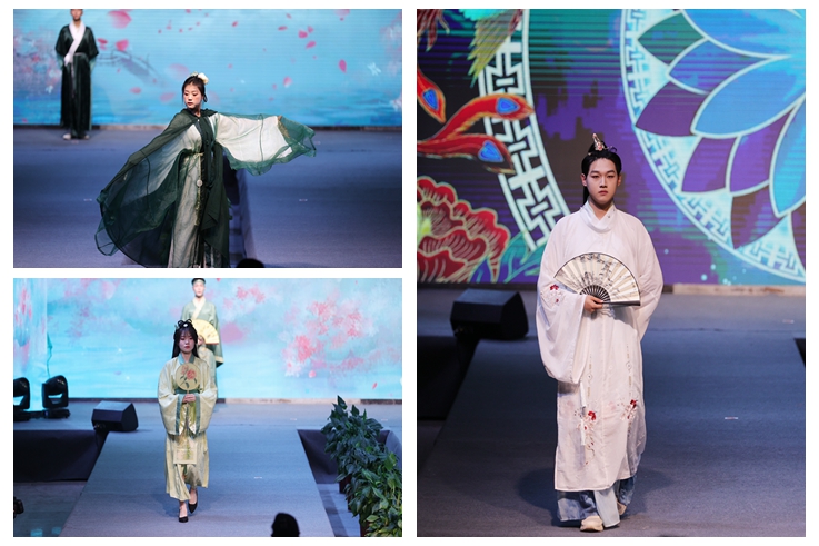 当晚8点,服装与服饰设计专业毕业设计作品展演正式拉开帷幕,本次展演共分为“丝路-探索-延续-交融-践行-梦想-未来”七个主题,展出汉服、礼服、民族服装、旗袍、童装、工作服、现代服装等147件。