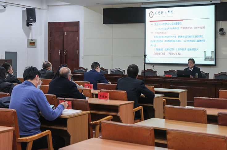 王长顺强调各相关二级学院、全体教师要充分认识师范专业认证工作的重要性,增强责任心、使命感、紧迫感,立足实际,精心实干,讲求实效,把实事做精,虚实做实,共同构建产出导向的师范人才培养体系,并持续改进,不断提高培养人才质量,为新时代育良师。