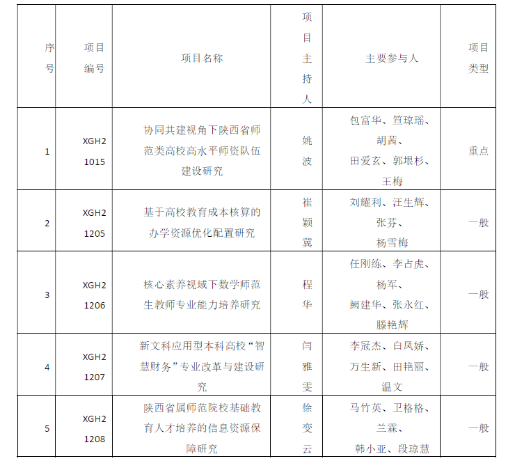 近日,陕西省高等教育学会发布《关于公布省高等教育学会2021年度高等教育科学研究项目立项结果的通知》(陕高学会〔2021〕13号)。beat365教师获得重点项目1项、一般项目4项。