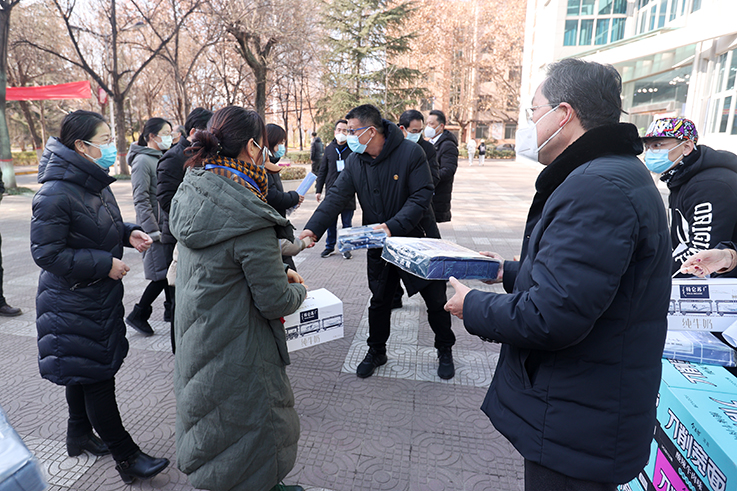 学校领导为大家送上牛奶、泡面、水果等慰问品,表达学校党委的关心与关爱,希望各位滞留教职工继续克服困难,积极工作,与全校师生一起,齐心协力打赢疫情防控阻击战。