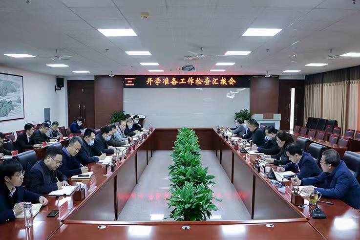 2月27日,校领导有相关职能部门负责人陪同,分成四组深入各职能部门、二级学院检查开学准备工作。