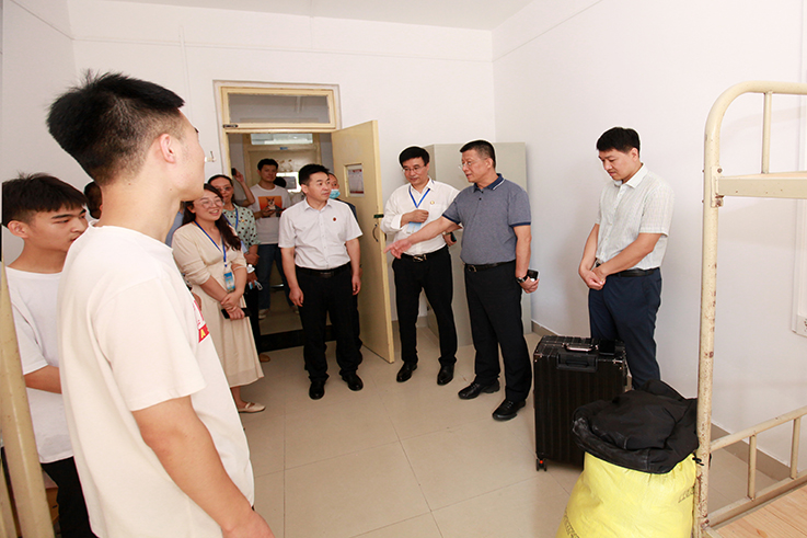 校党委书记赵万东、党委副书记袁也亲临秦都校区检查指导迎新工作,对新生报到、疫情防控、后勤保障等迎新相关工作进行检查指导,向工作在迎新现场的志愿者、教职员工及离退休教师致以亲切慰问,并深入宿舍与新生亲切交流。